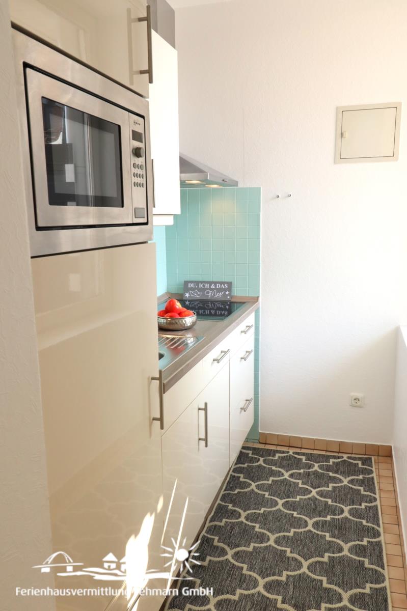Die Kochnische ist modern ausgestattet mit 4 Platten Induktionsherd, Geschirrspüler, Kühlschrank mit Frostfach, sowie einer Mikrowelle mit Grill Funktion. Es ist ausreichend Geschirr und Besteck vorhanden (Spülschwämme, Trockentücher, Spülmittel etc. sind mitzubringen)